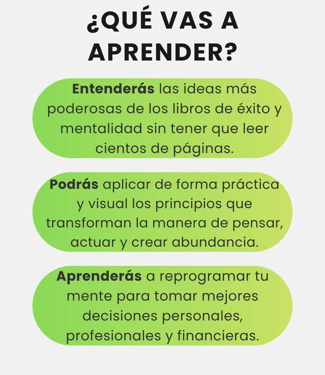 🧠 Incluye resúmenes visuales, lecciones clave y ejercicios prácticos basados en los libros más poderosos de mentalidad, éxito y finanzas.
