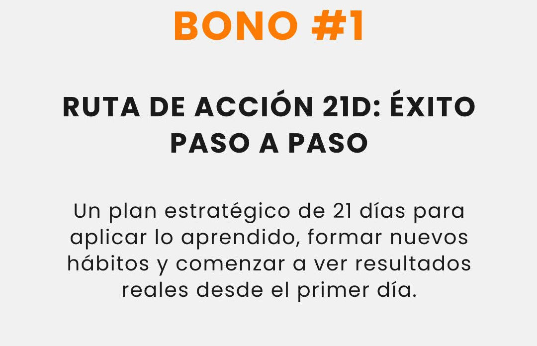 Además, obtienes 3 bonos exclusivos para acelerar tu transformación: