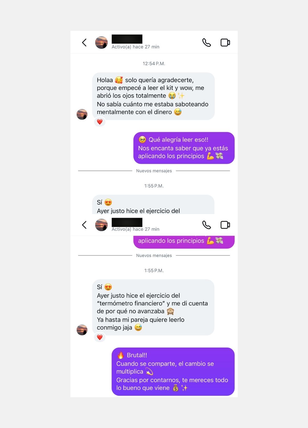 - Empiezas a ver un cambio en tu forma de pensar sobre el dinero y el éxito,
